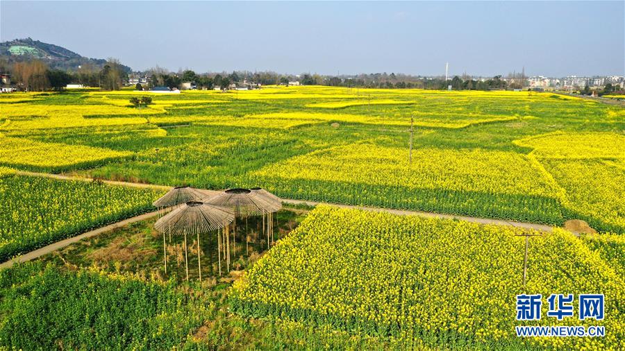 2月25日在四川省崇州市拍攝的油菜花田(無人機(jī)照片)。新華社記者王曦?cái)z