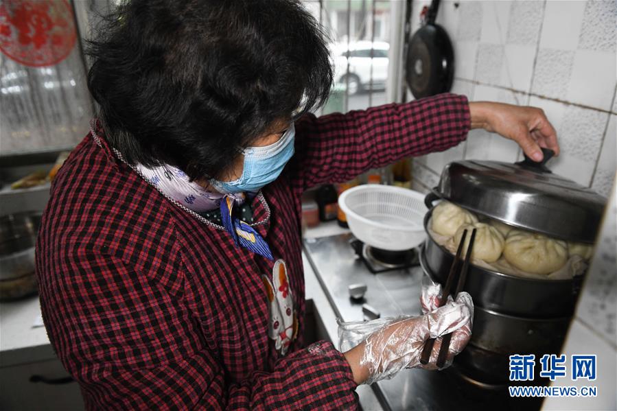 2月29日,張?zhí)m英在合肥市奧林花園社區(qū)的家中做包子,準(zhǔn)備送給疫情防控人員。
