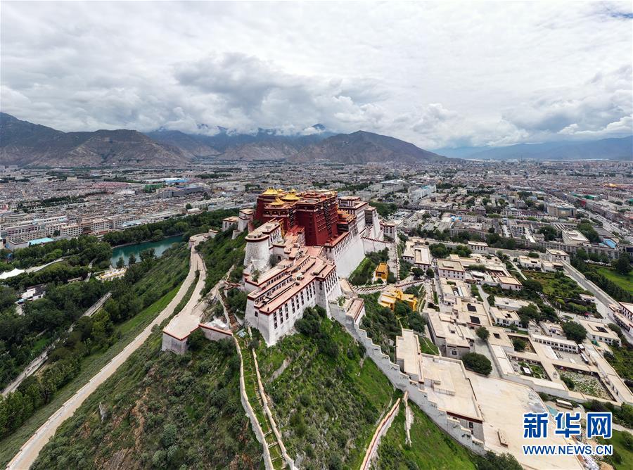 8月10日無(wú)人機(jī)拍攝的布達(dá)拉宮。新華社記者張汝鋒攝