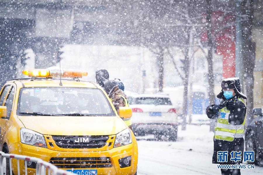 李可心在雪中值守(3月1日攝)。 新華社記者王松攝