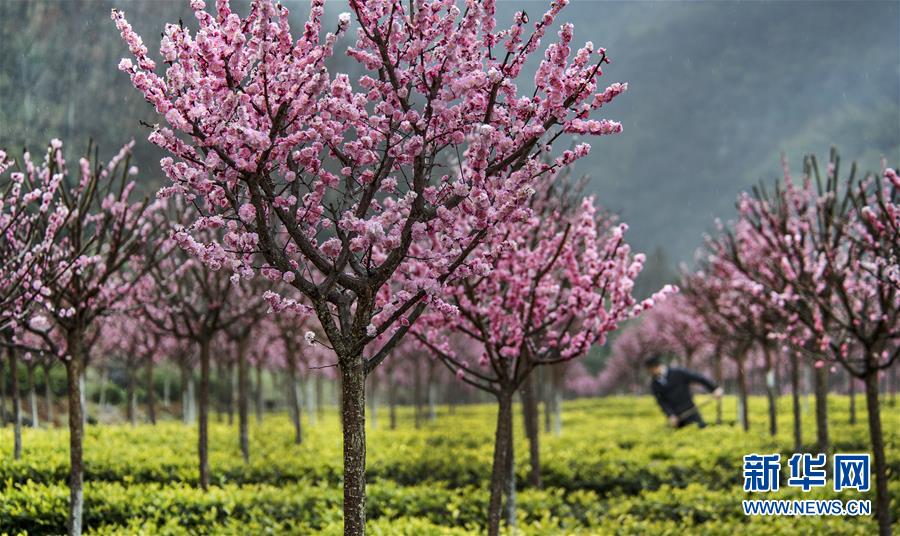 3月2日拍攝的平利縣長安鎮(zhèn)洪福茶山盛開的春梅。新華社記者陶明攝