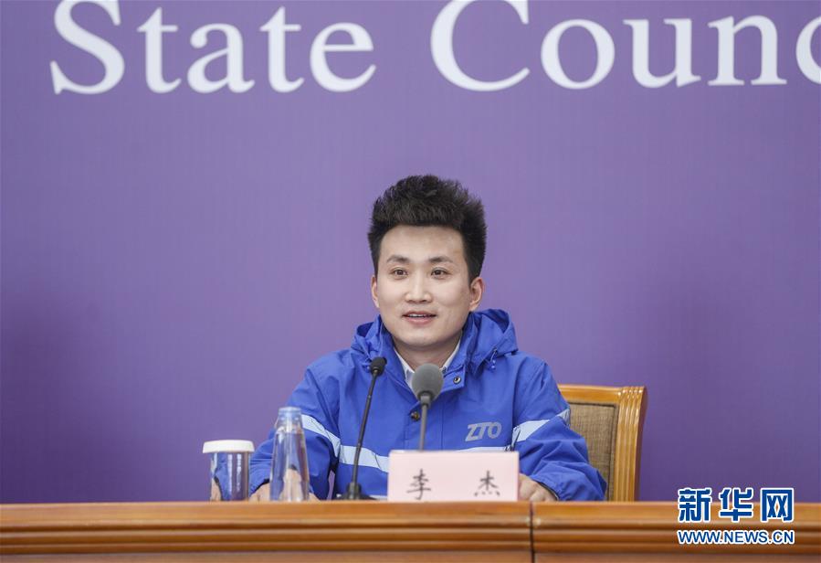 3月9日,中通快遞北京廠洼路網(wǎng)點(diǎn)快遞員李杰在北京出席國(guó)務(wù)院聯(lián)防聯(lián)控機(jī)制新聞發(fā)布會(huì)。