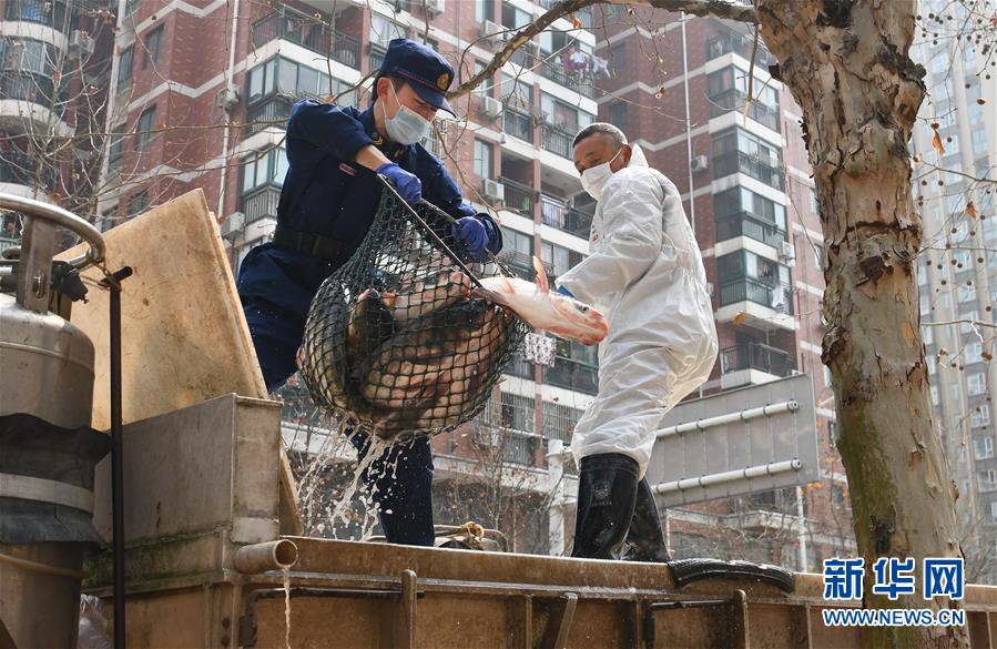 3月13日,一批運(yùn)到武漢市硚口區(qū)華生漢口城市廣場(chǎng)社區(qū)的活魚正在卸貨分裝。當(dāng)日,首批100噸調(diào)配自湖北省咸寧市的活魚運(yùn)抵武漢市硚口區(qū)11個(gè)街道下轄社區(qū)。咸寧是魚米之鄉(xiāng),水產(chǎn)資源豐富。此次戰(zhàn)疫咸寧得到了全國(guó)人民的支持,疫情得到良好控制。咸寧送魚,希望傳遞愛心,支持武漢早日戰(zhàn)勝疫情。新華社記者程敏攝