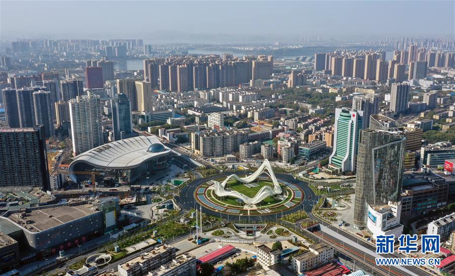 這是3月15日拍攝的武漢光谷廣場及周邊樓房(無人機(jī)照片)。 3月15日,江城武漢天氣晴好,整個(gè)城市沐浴在和煦的春光中。 新華社記者 李賀 攝