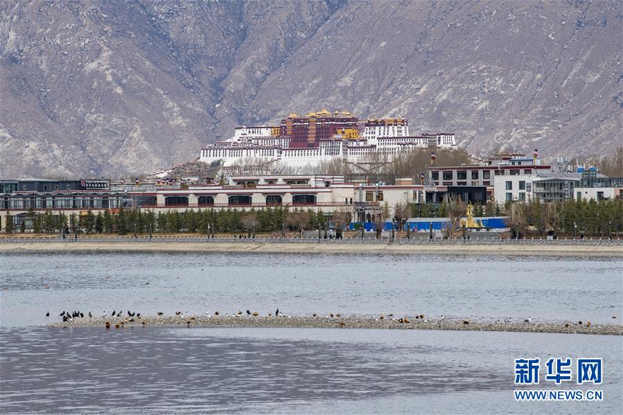 拉薩河中休憩的水鳥(3月14日攝)。新華社記者孫非攝