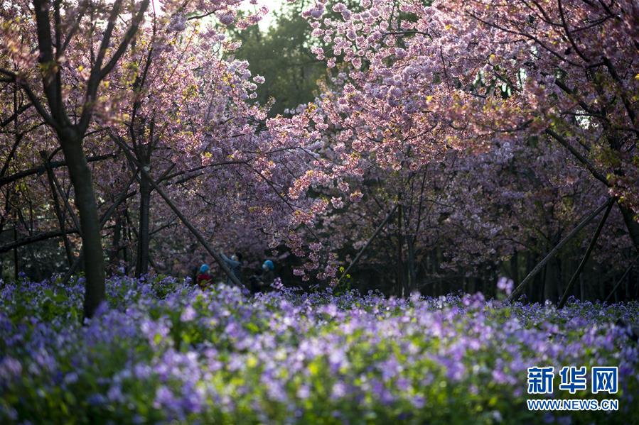 3月14日,游客在武漢東湖磨山櫻園游玩。近日氣溫漸升,武漢東湖磨山櫻園里的櫻花漸次盛開,帶來春天的氣息。新華社記者熊琦攝
