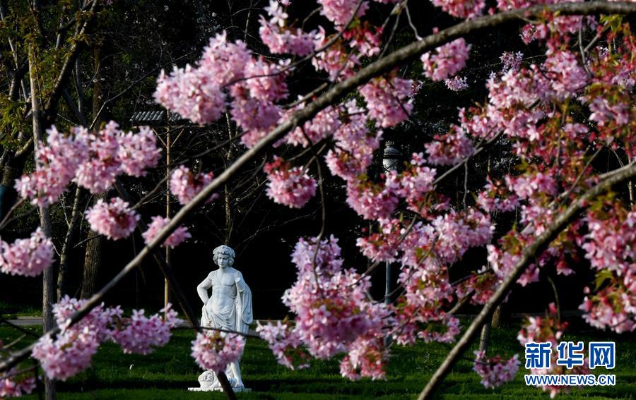 這是3月14日拍攝的武漢東湖磨山櫻園景色。近日氣溫漸升,武漢東湖磨山櫻園里的櫻花漸次盛開,帶來春天的氣息。新華社記者程敏攝