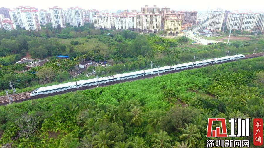 2020年3月17日,海南環(huán)島鐵路一列動(dòng)車從春光明媚的瓊海城區(qū)經(jīng)過(guò)。