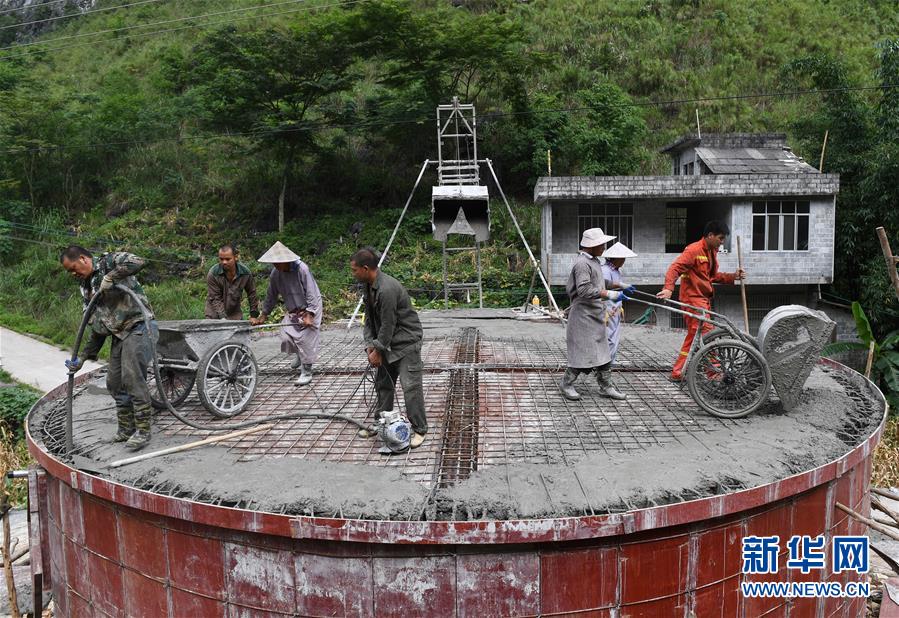 在廣西都安瑤族自治縣龍灣鄉(xiāng)龍煥村大朋屯,當(dāng)?shù)厝罕娫谛藿ㄋ瘢?019年7月23日攝)。廣西有近一半貧困人口生活在石漠化地區(qū),涉及數(shù)十個(gè)縣區(qū)。這里也是廣西飲水保障程度最低的地區(qū),解決貧困人口飲水問(wèn)題是廣西脫貧攻堅(jiān)戰(zhàn)“硬仗中的硬仗”?!笆濉币詠?lái),廣西加快實(shí)施農(nóng)村飲水安全鞏固提升工程。因地制宜,采取新建、擴(kuò)建及管網(wǎng)延伸等多種措施,補(bǔ)齊貧困地區(qū)水利薄弱短板,進(jìn)一步提升石漠化地區(qū)群眾飲水安全保障水平,助推脫貧攻堅(jiān)。新華社記者陸波岸攝