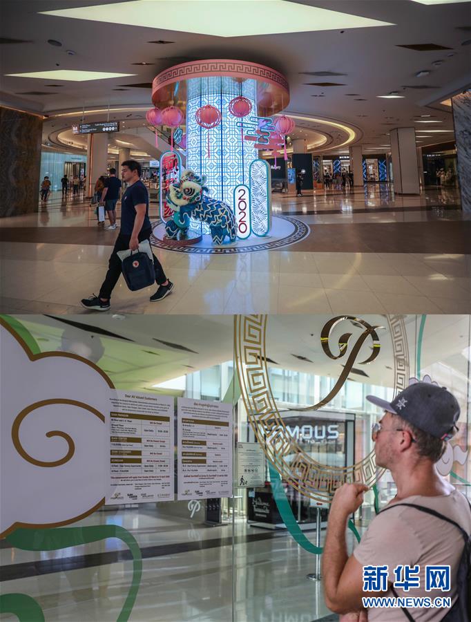 這張拼版照片顯示,3月21日顧客在泰國(guó)曼谷暹羅百麗宮商場(chǎng)購(gòu)物(上圖)和3月22日一名游客在泰國(guó)曼谷暹羅百麗宮商場(chǎng)門(mén)口查看停業(yè)公告。新華社記者張可任攝
