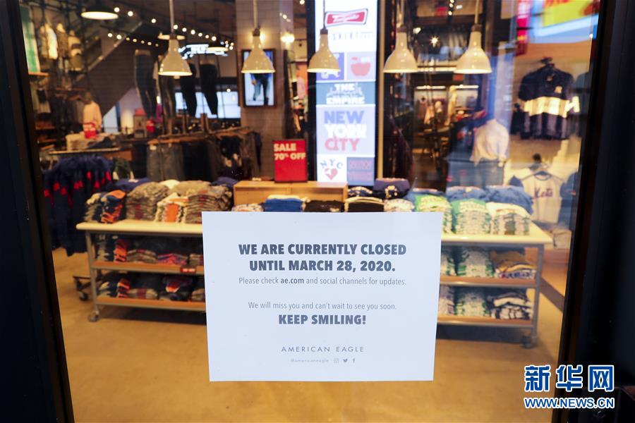 3月21日,在美國紐約時報廣場,一家服裝店貼出閉店告示。美國紐約州、伊利諾伊州、康涅狄格州20日發(fā)布針對本州居民的“居家令”,以遏制新冠病毒傳播。這些“居家令”涵蓋紐約、洛杉磯、芝加哥等大城市,影響數(shù)千萬人。白宮20日發(fā)表聲明說,總統(tǒng)特朗普已宣布紐約州出現(xiàn)“重大災難”,命令聯(lián)邦政府支援該州抗擊新冠肺炎疫情。新華社記者王迎攝