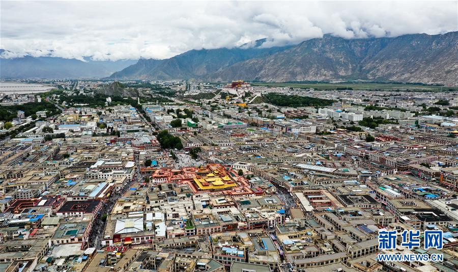 8月10日無人機拍攝的大昭寺和布達拉宮。新華社記者王建華攝