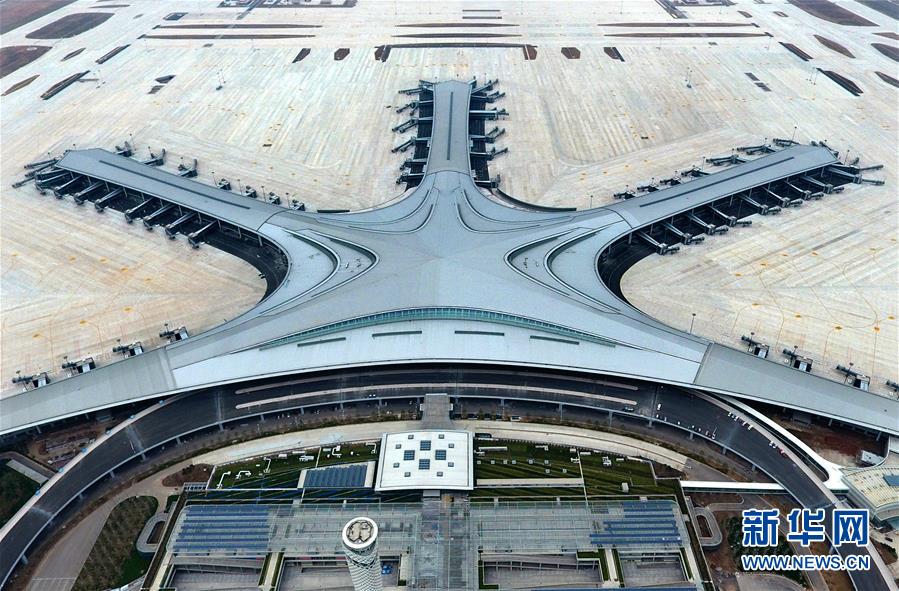 2019年6月12日無人機拍攝的建設中的青島膠東國際機場。新華社記者李紫恒攝