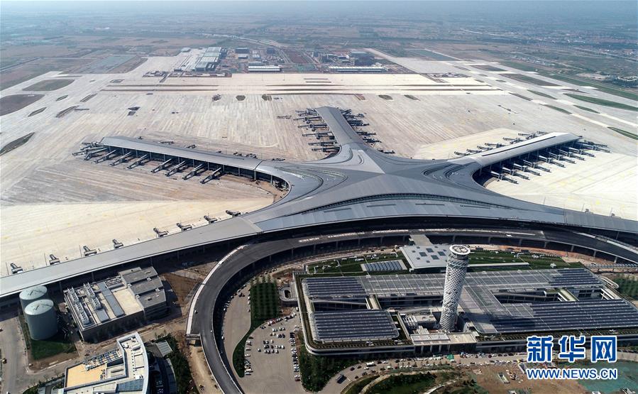 建設(shè)中的青島膠東國際機(jī)場(6月12日無人機(jī)拍攝)。新華社記者李紫恒攝