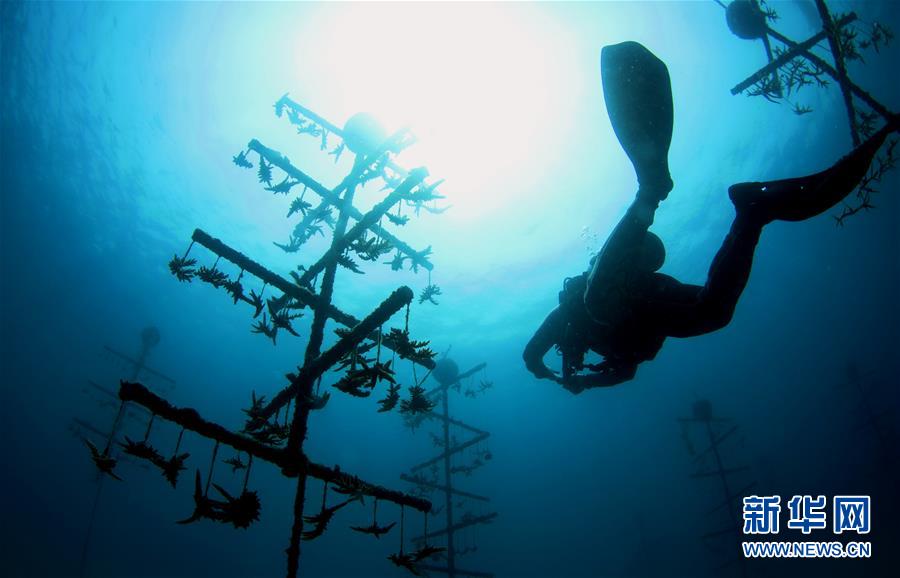 3月28日,在位于海南三亞蜈支洲島旅游區(qū)的海洋牧場,工作人員在進行巡護。近日,位于海南三亞蜈支洲島旅游區(qū)的海洋牧場復工,海底作業(yè)逐漸恢復正常,開始進行人工魚礁吊裝擺位、水下監(jiān)控清理以及日常巡護等工作。據介紹,人工魚礁有利于魚類種類增加和數量提高,蜈支洲島海域海洋牧場人工魚礁表面附著珊瑚、貝類、藻類等生物種類達120余種。新華社記者楊冠宇攝
