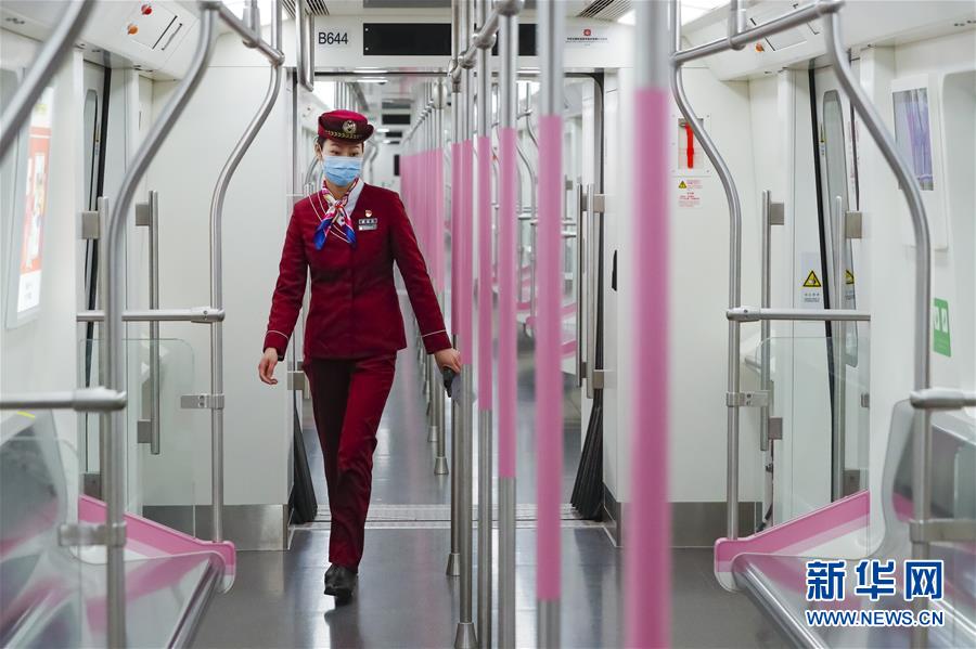 3月28日,武漢地鐵運(yùn)營(yíng)有限公司司機(jī)吳亞在常青車輛段巡視車輛內(nèi)部情況。新華社記者沈伯韓攝