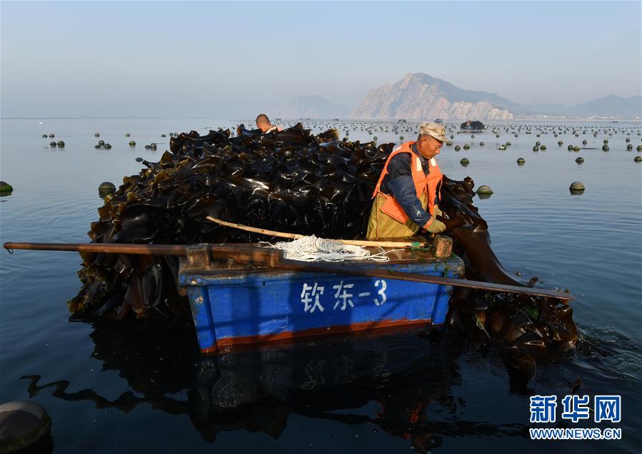 大欽島鄉(xiāng)位于山東省煙臺市長島縣北部。每年5月至8月,該島嶼附近的1.3萬畝海帶進入收獲期。海島居民們每天駕駛小船駛向養(yǎng)殖區(qū)收割海帶,諸多工序有條不紊,迎來忙碌的“夏收”季節(jié)。2018年,大欽島共收獲鮮海帶18.2萬噸,加工干海帶約1.8萬噸,產值1.5億元。