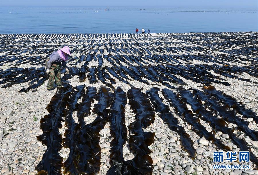 海島居民在晾曬海帶(5月23日攝)。新華社記者朱崢攝
