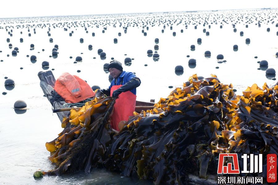 場面壯觀!山東威海收割海帶