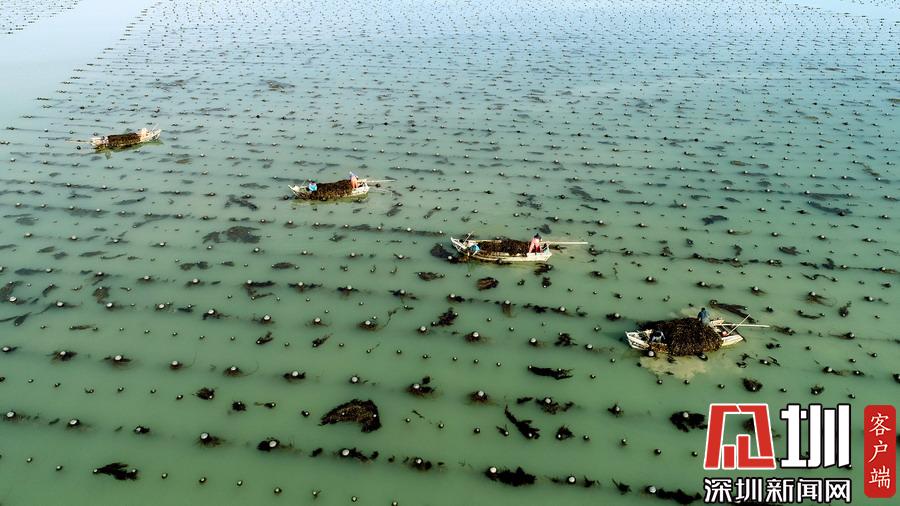 場面壯觀!山東威海收割海帶