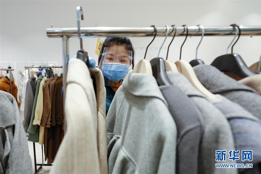 3月30日,在武漢市武商世貿廣場,銷售員在整理貨架上的衣服。當日,武漢市多家商場開門迎客。新華社記者沈伯韓攝