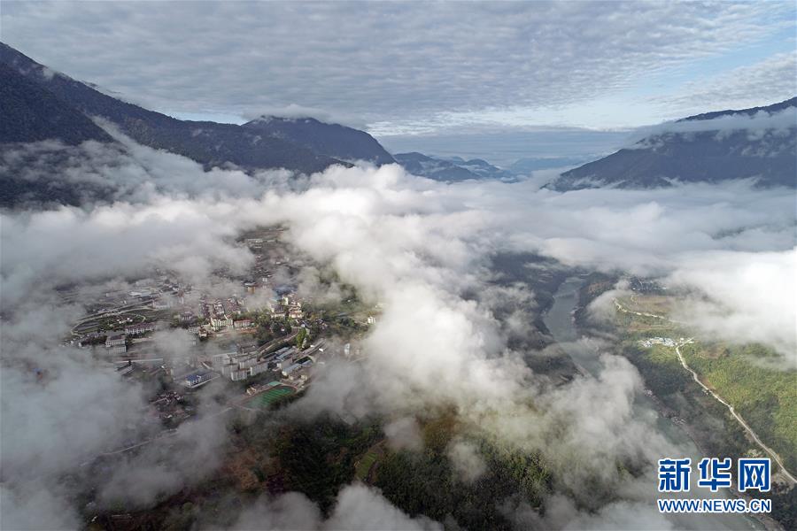 這是云?;\罩的西藏墨脫縣(4月9日無(wú)人機(jī)拍攝)。新華社記者李鑫攝