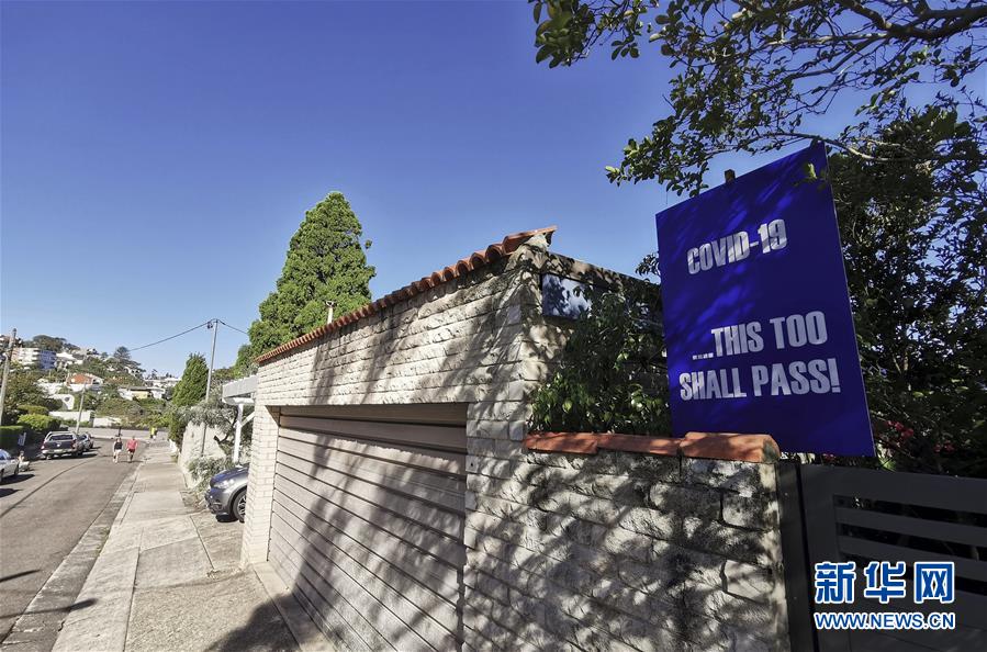 這是4月4日在澳大利亞悉尼費(fèi)爾萊特社區(qū)拍攝的標(biāo)語牌。