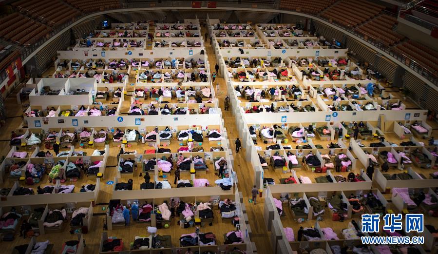 2月17日拍攝的武漢體育中心方艙醫(yī)院。 新華社記者肖藝九攝