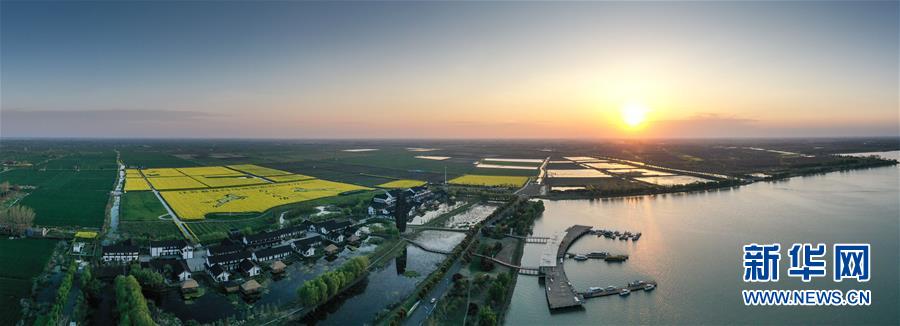 這是4月5日拍攝的白馬湖風(fēng)光(無(wú)人機(jī)全景照片)。 新華社記者 楊磊 攝