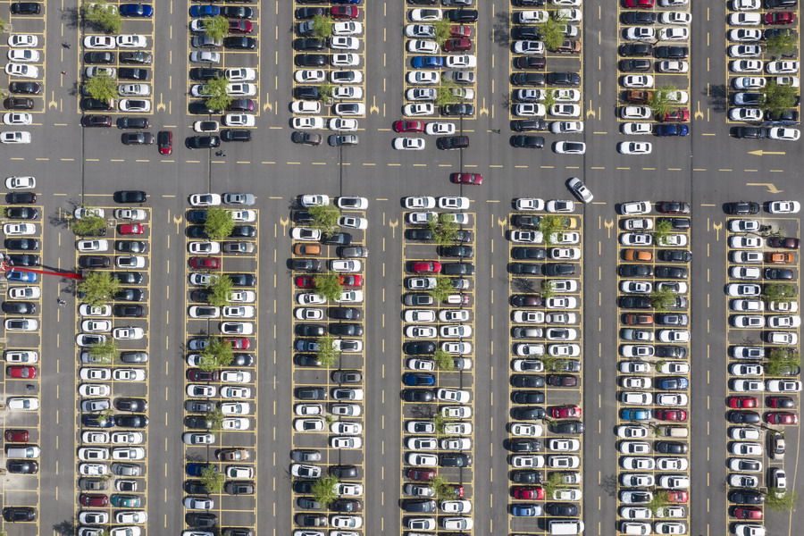 2019年4月6日,浙江杭州,清明小長假的第二天,迎來出游高峰,各大景區(qū)停車場都趨于飽和。圖為位于蕭山區(qū)的杭州樂園停車場,停滿了大大小小的車輛。