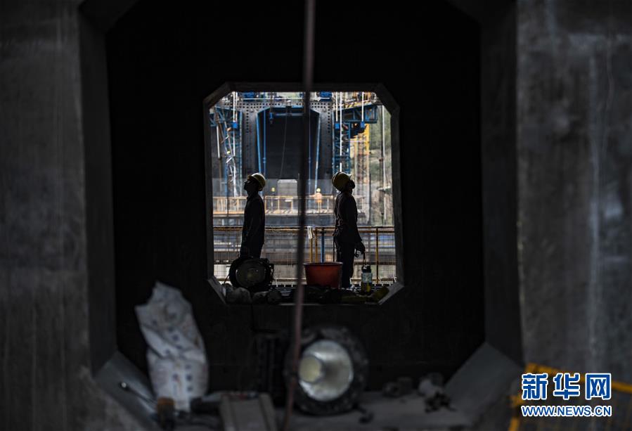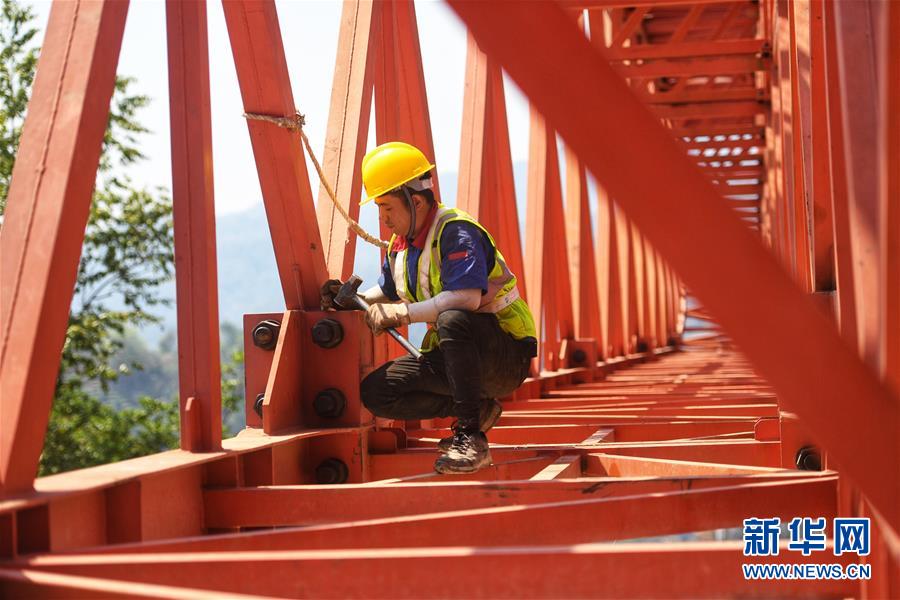 4月8日,兩名中鐵四局職工安裝架設(shè)鋼桁梁,每節(jié)鋼桁梁間的精度需要達(dá)到毫米級才能保證安裝到位。新華社記者江文耀攝