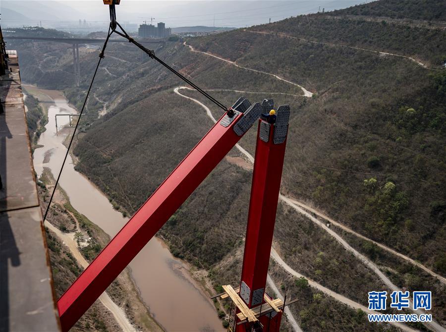 4月8日清晨,工人在中老鐵路元江特大橋上進(jìn)行鋼桁梁架設(shè)作業(yè)(無人機(jī)照片)。4月7日,中老鐵路全線重點控制性工程——元江特大橋迎來關(guān)鍵節(jié)點,主橋鋼桁梁正式“邁”過154米高的主橋墩,這是世界同類鐵路橋梁第一高墩。元江特大橋位于云南省元江縣,采用上承式連續(xù)鋼桁梁跨越峽谷,全長832.2米,建成后,其249米的主跨也將刷新國內(nèi)同類橋梁跨度紀(jì)錄。新華社記者江文耀攝