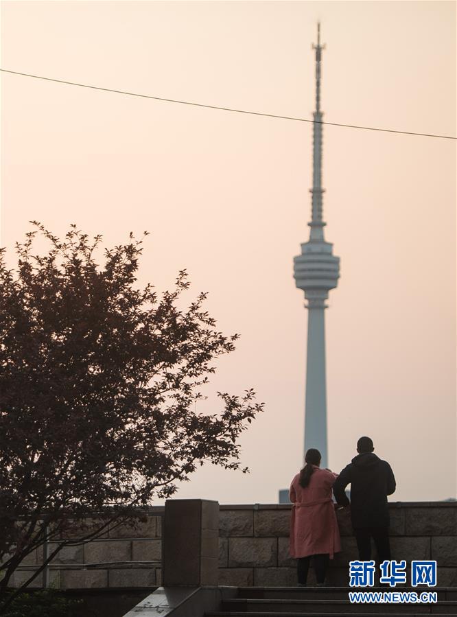 4月8日,市民在武漢中華路碼頭欣賞風(fēng)景。新華社記者肖藝九攝
