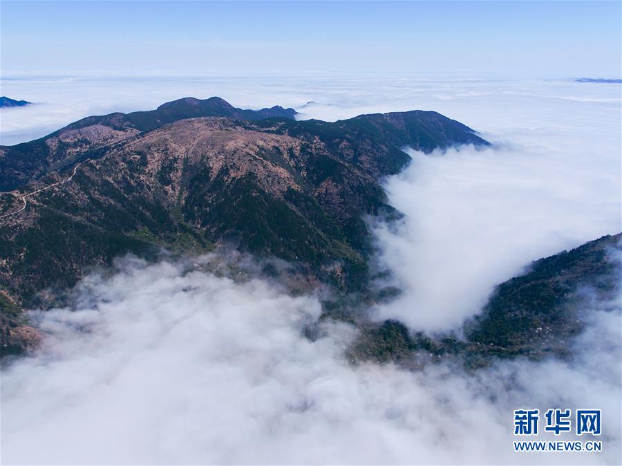 武夷山國(guó)家公園最高峰黃崗山云霧繚繞(4月1日攝,無(wú)人機(jī)照片)。新華社記者姜克紅攝