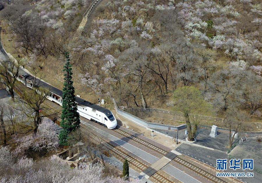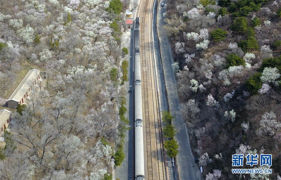 4月8日,北京青龍橋火車站附近春花盛開(無人機照片)。 當日,北京青龍橋火車站附近,春花綻放,為這座百年火車站增添濃濃春意。 新華社記者張晨霖攝