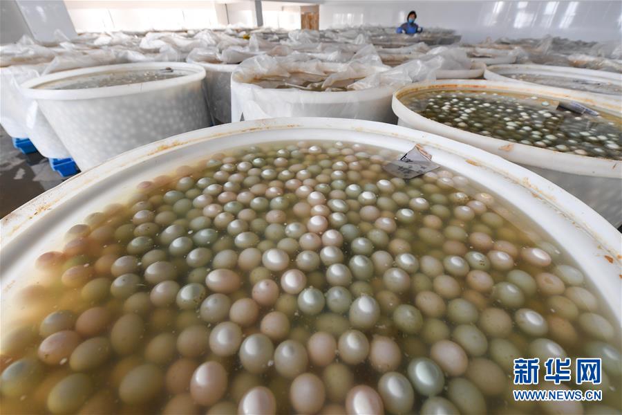 在江蘇高郵鴨集團生產(chǎn)車間,腌制好的鴨蛋準備進行清洗包裝作業(yè)(4月15日攝)。“高郵鴨蛋”是江蘇高郵的特色農(nóng)業(yè)名片。近年來,當(dāng)?shù)卦诹挤N繁育、生態(tài)養(yǎng)殖、產(chǎn)品加工等方面加大力度,推動高郵鴨蛋品牌化建設(shè),讓小鴨蛋成為帶動農(nóng)戶致富的大產(chǎn)業(yè)。2019年,高郵市共計生產(chǎn)熟制鴨蛋產(chǎn)品近11.2億枚,年產(chǎn)值近17.68億元。新華社記者李博攝