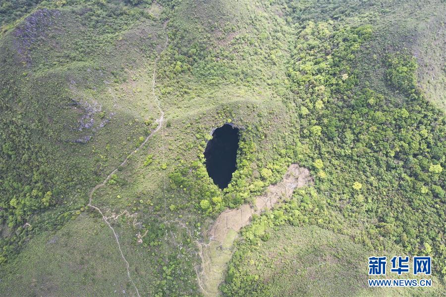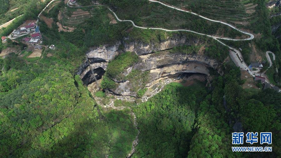 4月22日無人機(jī)拍攝的地洞河天坑。新華社記者張博文攝