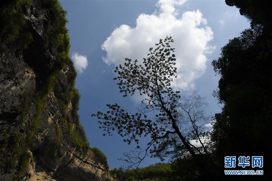 地洞河天坑的巖壁。新華社張博文攝