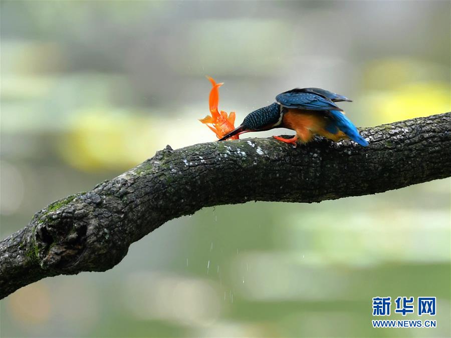 4月19日,在福州西湖公園,一只翠鳥捕到一條小魚。當日是春季的最后一個節(jié)氣“谷雨”。此時節(jié),春天即將走到尾聲,萬物將展現(xiàn)出蓬勃生長的姿態(tài)。新華社記者魏培全攝