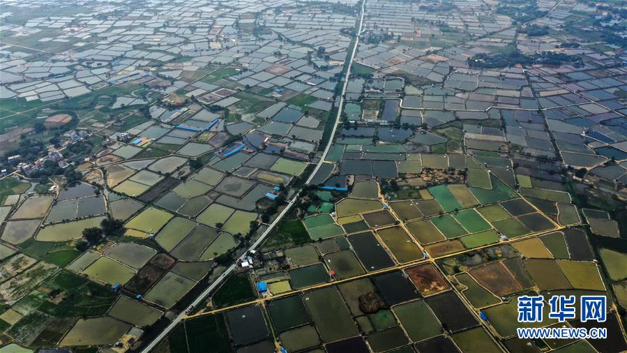 新華社照片,合浦(廣西),2020年4月21日鳥瞰廣西合浦春色這是4月21日拍攝的合浦縣境內(nèi)的春日風(fēng)光(無人機照片)。暮春時節(jié),從空中俯瞰廣西北海市合浦縣大地,河流、稻田、蝦塘、道路、村莊星羅棋布、色彩斑斕,美不勝收。新華社記者張愛林?jǐn)z
