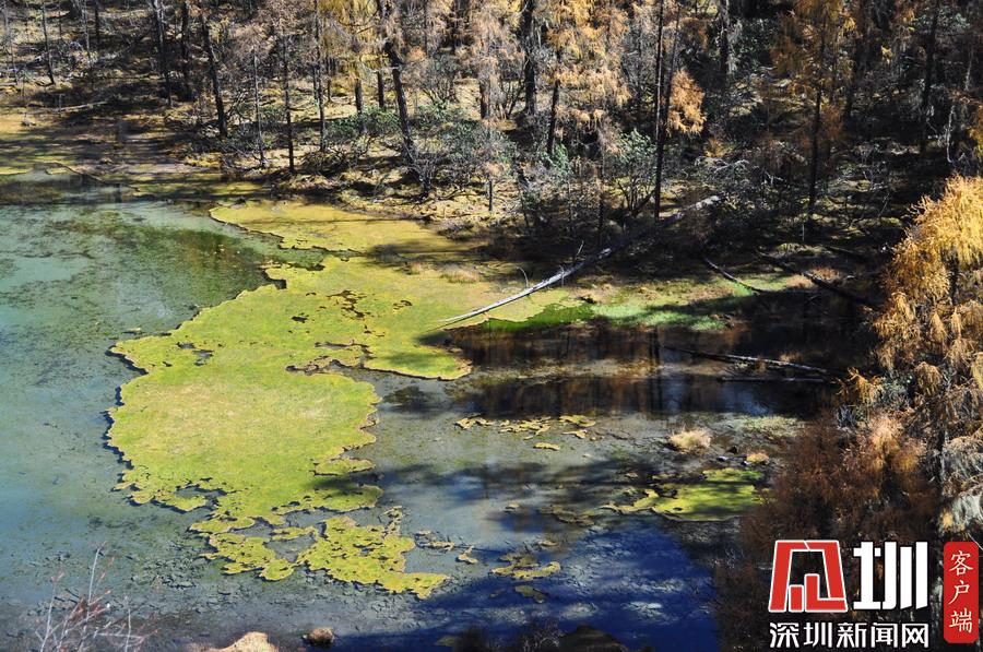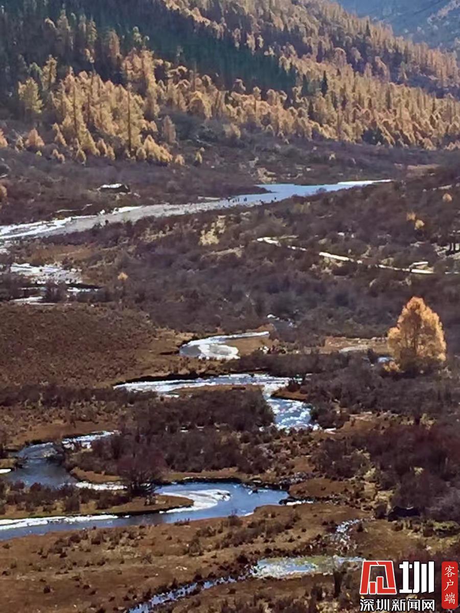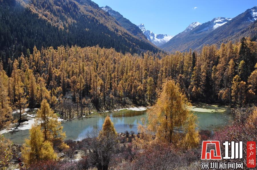 溝里有大片的落葉松、杜鵑和云杉林,雪山、海子、濕地、河流等景觀應(yīng)有盡有,唯獨沒有公路,只能沿木棧道徒步游覽。李仁奇攝
