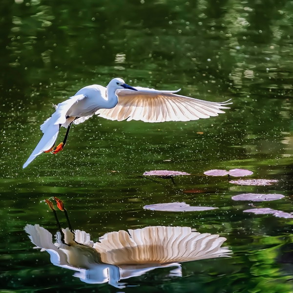 4月15日,攝于南山區(qū)華僑城天鵝堡附近。這是深圳拍鷺鳥的其中一個(gè)好去處。白鷺飛行時(shí)頭往回縮至肩背處,頸向下曲成袋狀,兩腳向后伸直,遠(yuǎn)遠(yuǎn)突出于尾后,兩翅緩慢地鼓動(dòng)飛翔。徐捷