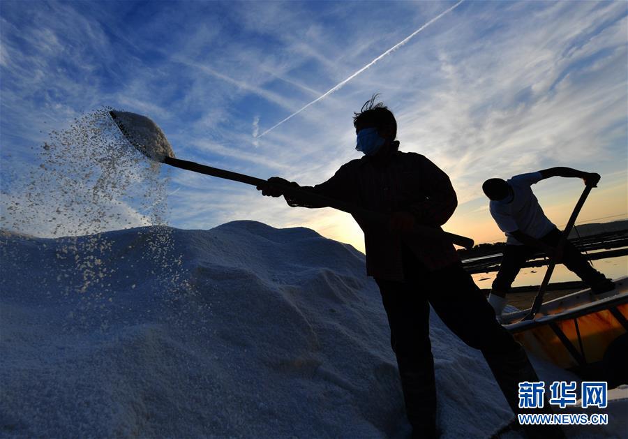 4月27日,莆田鹽場的工人在勞作。莆田鹽場位于福建省莆田市秀嶼區(qū)東嶠鎮(zhèn),辛勤勞作的鹽工、縱橫交錯(cuò)的曬鹽池,共同構(gòu)成如畫的風(fēng)景。新華社記者魏培全攝
