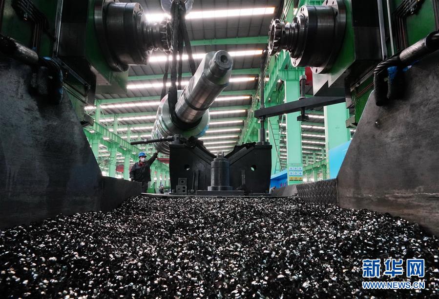 4月27日,工人在唐山市豐潤區(qū)一家軋輥生產(chǎn)企業(yè)車間工作。河北省唐山市豐潤區(qū)裝備制造業(yè)企業(yè)全面復工復產(chǎn)以來,各企業(yè)在做好疫情防控的同時,開足馬力加緊生產(chǎn),趕制訂單滿足需求,助推經(jīng)濟發(fā)展。新華社記者楊世堯攝