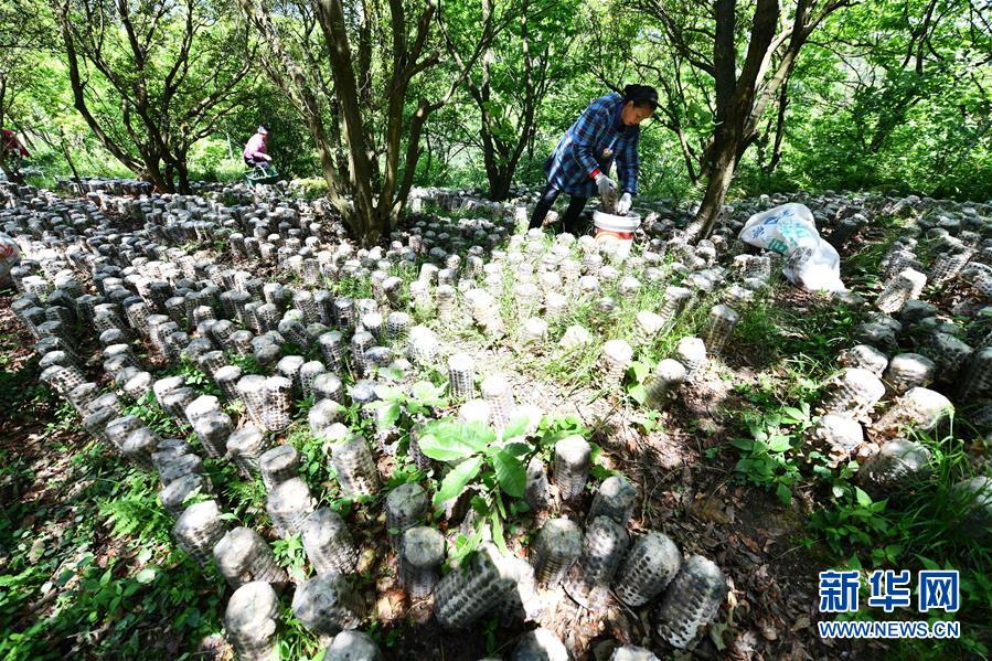 村民在劍河縣岑松鎮(zhèn)巫亮村林下仿野生食用菌基地采摘木耳(4月27日攝)。近年來,貴州省黔東南苗族侗族自治州劍河縣充分利用林下土地培育木耳,既不耽誤林木生長,又發(fā)展了食用菌產(chǎn)業(yè)。目前,該縣采取“龍頭企業(yè)+合作社+貧困戶”的合作模式,大力推廣林下木耳種植,帶動農(nóng)民增收。新華社記者楊文斌攝