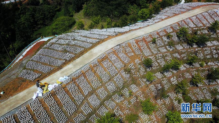 這是4月26日拍攝的劍河縣關(guān)口萬畝生態(tài)農(nóng)業(yè)示范基地培育的木耳(無人機(jī)照片)。近年來,貴州省黔東南苗族侗族自治州劍河縣充分利用林下土地培育木耳,既不耽誤林木生長(zhǎng),又發(fā)展了食用菌產(chǎn)業(yè)。目前,該縣采取“龍頭企業(yè)+合作社+貧困戶”的合作模式,大力推廣林下木耳種植,帶動(dòng)農(nóng)民增收。新華社記者楊文斌攝