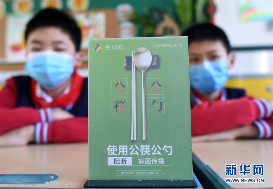 4月30日,諸暨市暨陽小學(xué)五年級4班學(xué)生在主題班會中。當日,浙江省諸暨市暨陽小學(xué)五年級4班開展“公筷公勺新家風(fēng)”主題班會活動,通過海報設(shè)計、情景劇表演等強化孩子們使用公筷公勺的意識,倡導(dǎo)文明用餐。新華社記者 韓傳號 攝