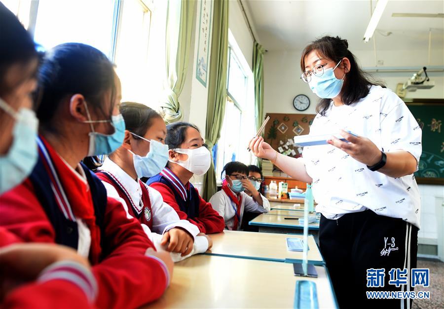 4月30日,諸暨市暨陽(yáng)小學(xué)五年級(jí)4班班主任宣明霞在主題班會(huì)上向?qū)W生講解家庭用餐使用公筷公勺的重要性。當(dāng)日,浙江省諸暨市暨陽(yáng)小學(xué)五年級(jí)4班開展“公筷公勺新家風(fēng)”主題班會(huì)活動(dòng),通過(guò)海報(bào)設(shè)計(jì)、情景劇表演等強(qiáng)化孩子們使用公筷公勺的意識(shí),倡導(dǎo)文明用餐。新華社記者 韓傳號(hào) 攝