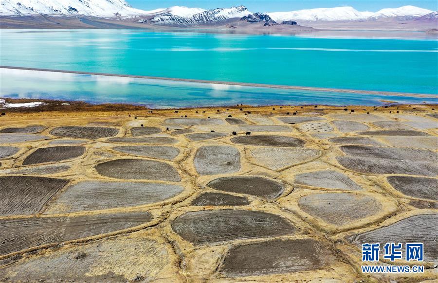 這是4月30日拍攝的當穹錯湖畔的農(nóng)田(無人機照片)。當穹錯地處西藏那曲市尼瑪縣南部,湖面海拔4475米。暮春時節(jié),湖水碧藍清亮,讓人仿佛置身仙境。新華社記者田金文攝