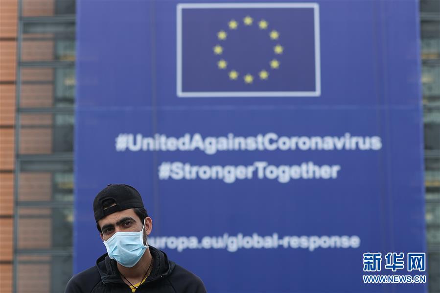 歐盟委員會(huì)5月6日預(yù)測,受新冠疫情影響,2020年歐洲經(jīng)濟(jì)將出現(xiàn)“歷史性衰退”,歐盟經(jīng)濟(jì)將萎縮7.5%,歐元區(qū)經(jīng)濟(jì)將萎縮7.75%。這是5月4日在比利時(shí)布魯塞爾的歐盟委員會(huì)總部大廈前拍攝的一名戴口罩的男子。新華社記者鄭煥松攝